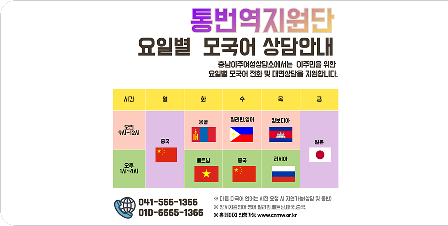 Mobile. 010-6665-1366 Fax. 041-556-0413E-mail. cnmw5661366@daum.net09:00 ~ 18:00 (점심 12:00 ~ 13:00)토,일요일, 공휴일 휴무
